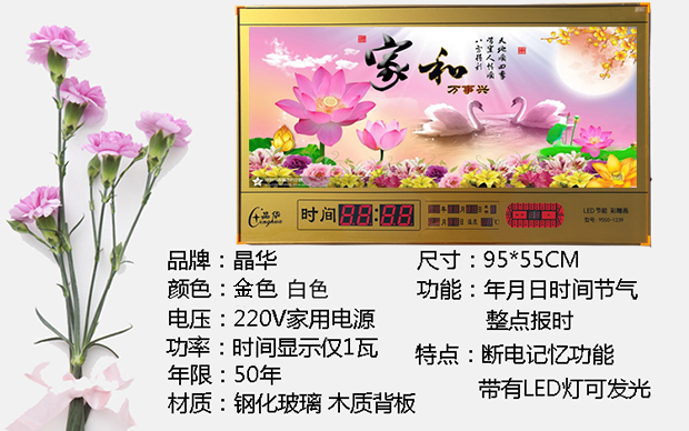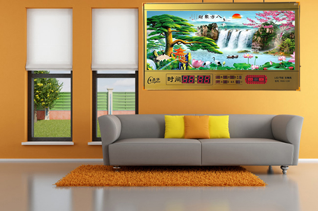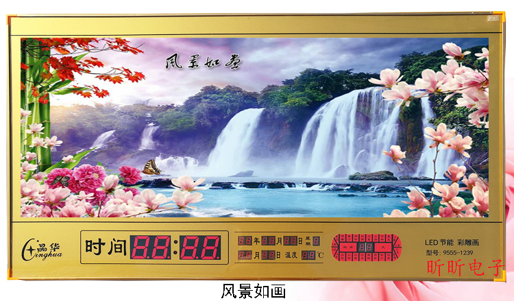 新房客廳裝飾日歷掛鐘,家和風(fēng)景萬(wàn)年歷,超薄七彩燈光更漂亮