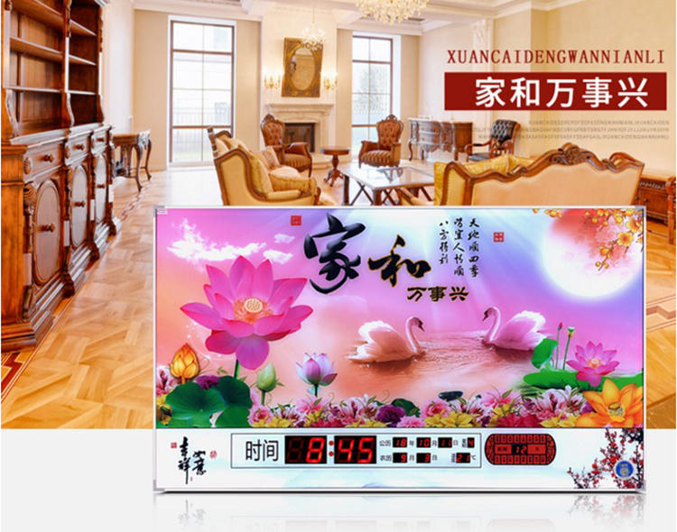 新房客廳裝飾日歷掛鐘,家和風(fēng)景萬(wàn)年歷,超薄七彩燈光更漂亮