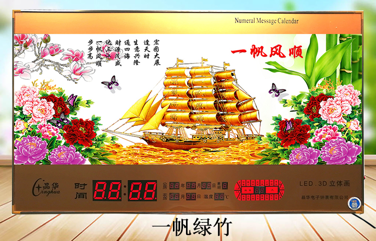 新房客廳裝飾日歷掛鐘,家和風(fēng)景萬(wàn)年歷,超薄七彩燈光更漂亮